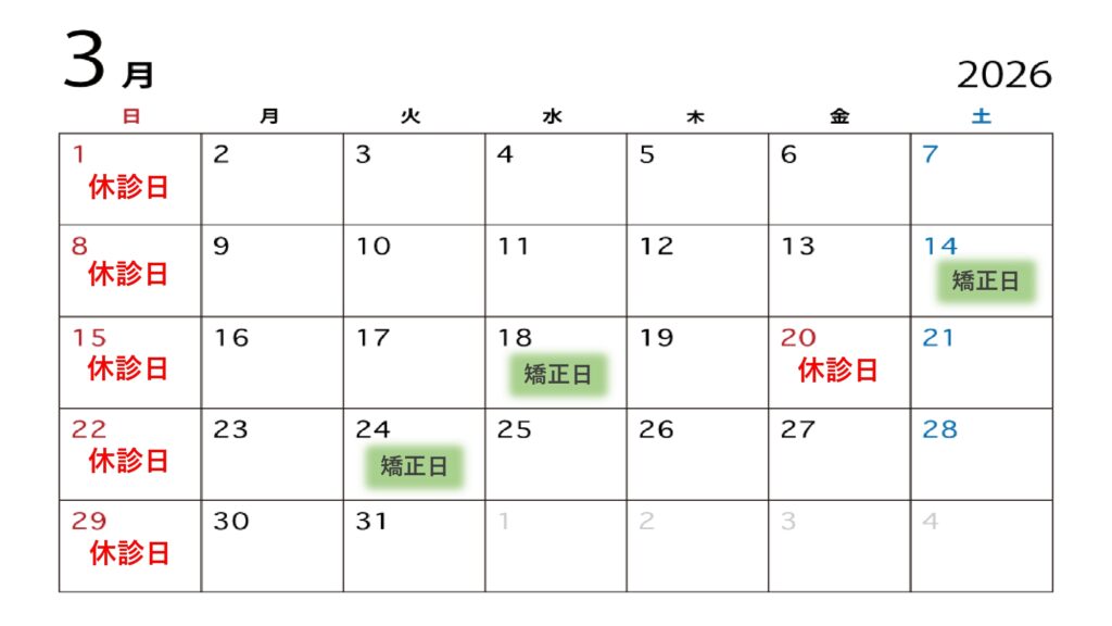 【2026年3月の矯正日】